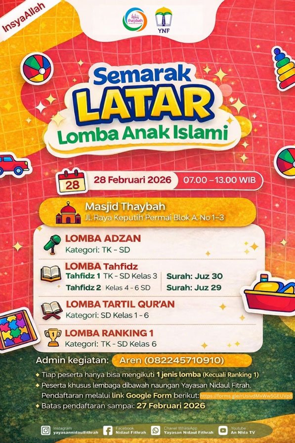 Alhamdulillahilladzi bini’matihi tatimmush sholihaat. Senin – Jum’at (26-30 Januari 2026)RB Thaybah Wisma ...