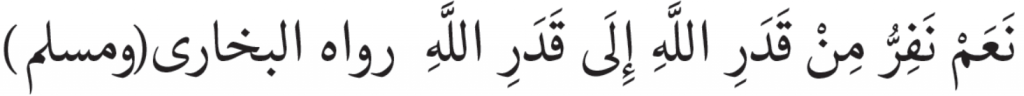 “Iya, saya lari dari takdir Allah menuju takdir Allah yang lain” (HR. Bukhari dan Muslim)